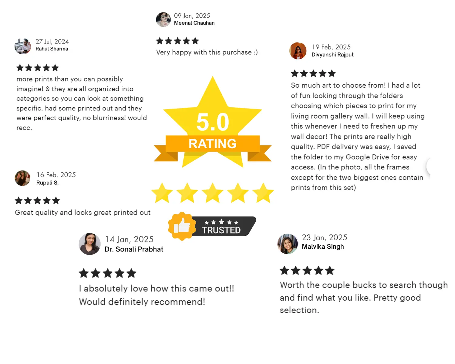 “Absolutely love the prints! The designs are vibrant, and the quality is amazing. My living room looks so much more lively now!..”